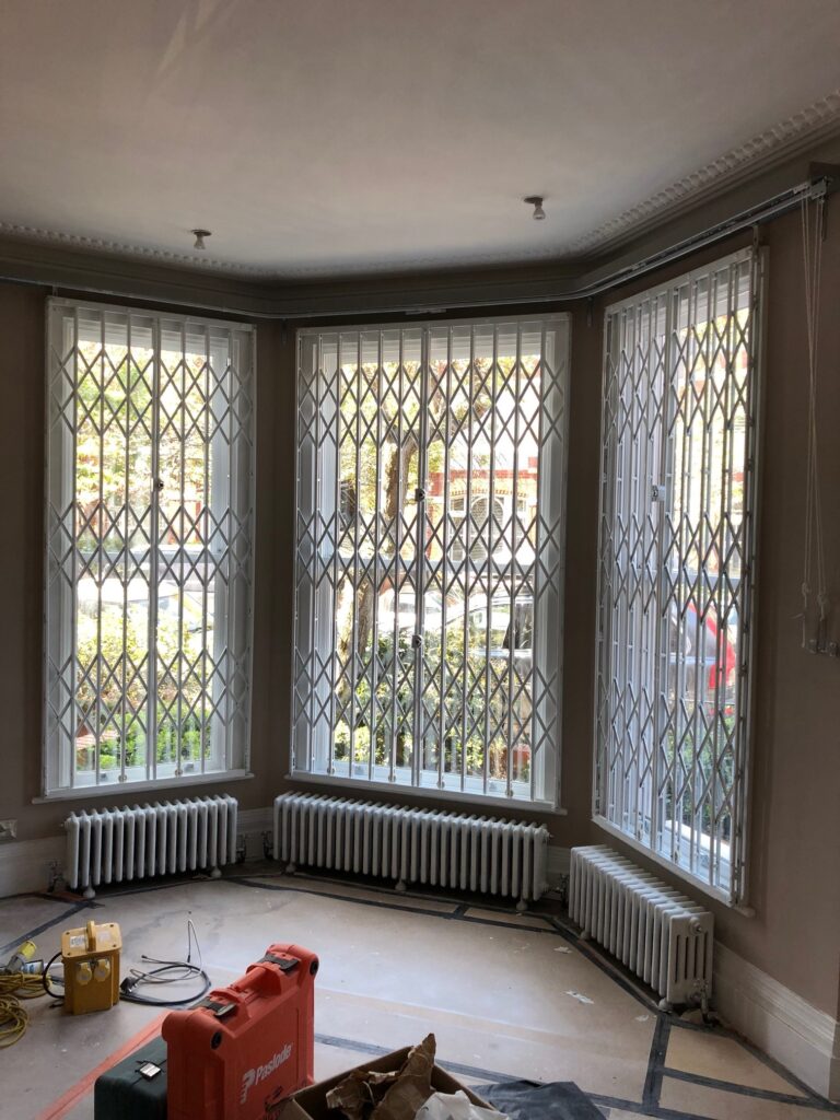 When external security is not an option you can secure your premises with internal security grilles. Available in a range of colours and locking options, these grilles provide security and vision and slide easily to one side to allow access to window handles or blinds.